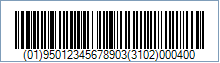 Code property = 01950123456789033102000400 will produce the following barcode image: