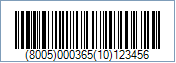 Code property = Ì8005000365Ê10123456 (The Ì (ASCII 204) character has been added before the first AI in order to fix parenthesis order and to specify an AI which length should be 4; and the Ê (ASCII 202) character has been added before the second AI in order to fix parenthesis order and to specify an AI which length should be 2)